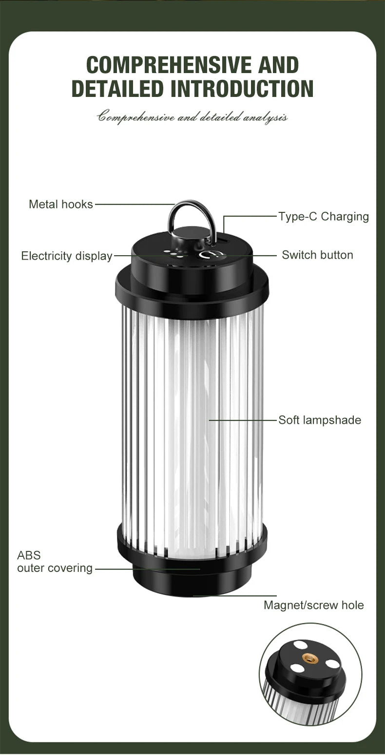 Outdoor camping tools camping lights 5 kinds of lights adjustable ceiling can be connected with the bracket TYPE-C charging.