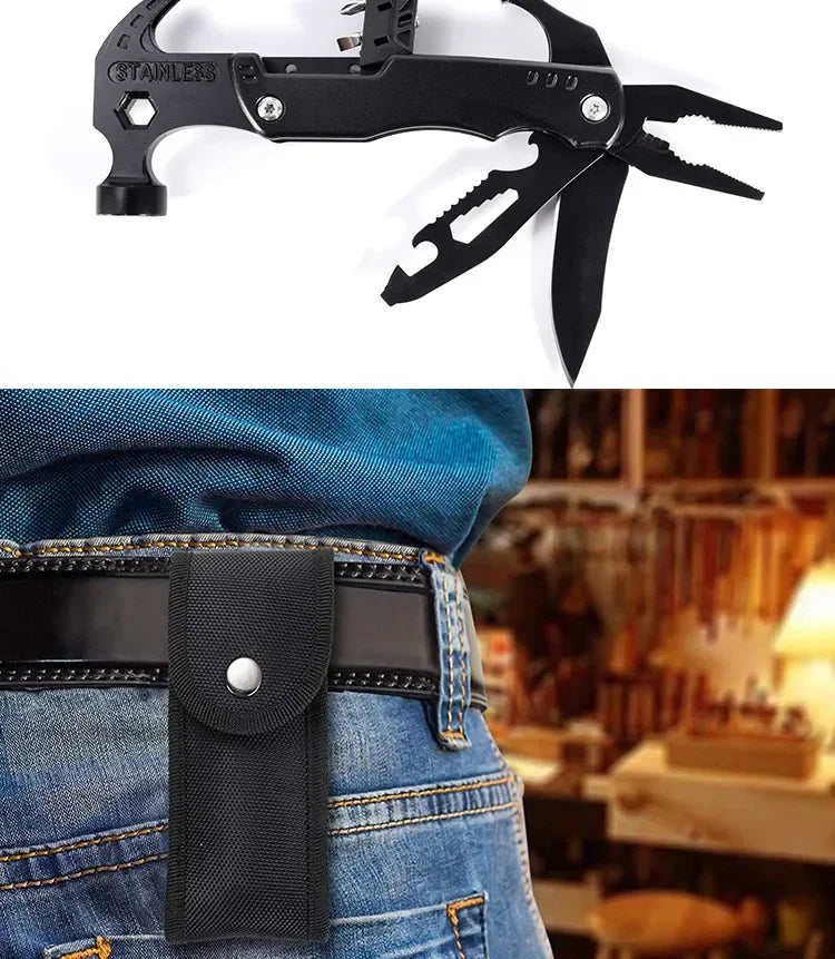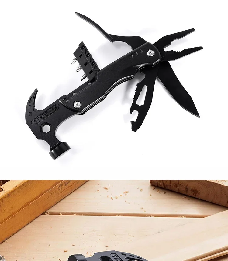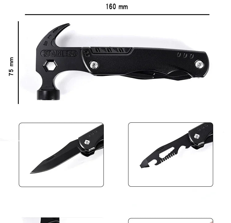 Outdoor Multi-Function Claw Hammer Pliers Camping Nail Multi-Purpose Folding Tool Wrench, Survival Mini Hammer Hand Tools